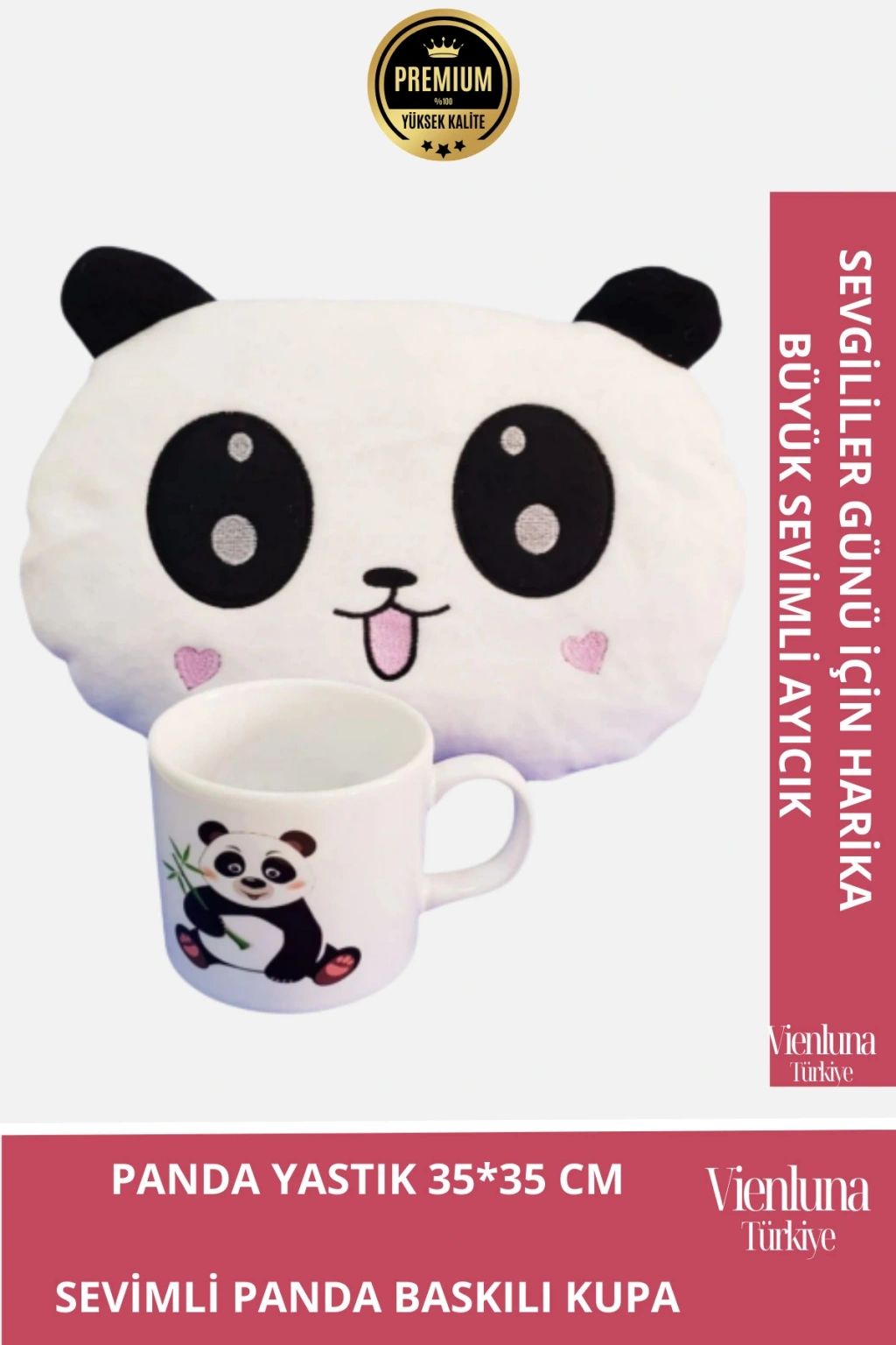 Panda Tasarımlı Kalp Yanaklı Yastık ve Kupa Hediye Seti ?❤️