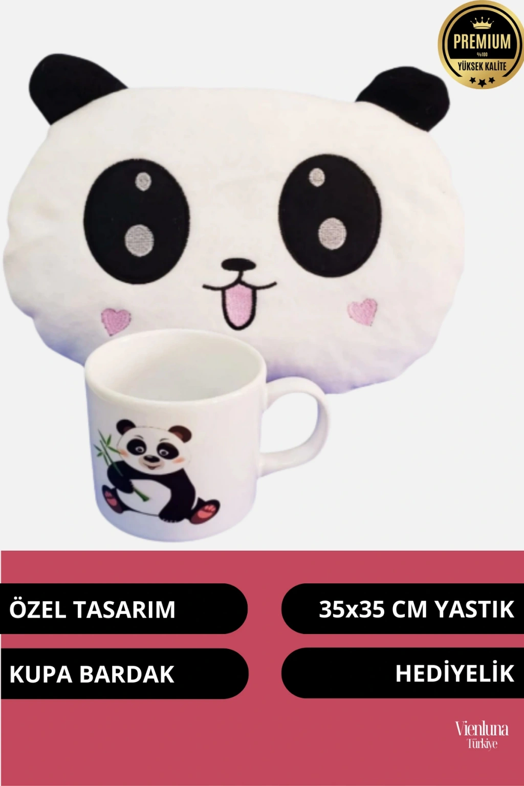 Sevimli panda tasarımıyla hazırlanan bu yumuşacık kalp yanaklı yastık ve şık panda kupa, hem tatlı hem de anlamlı bir hediye seçeneği sunuyor. ??