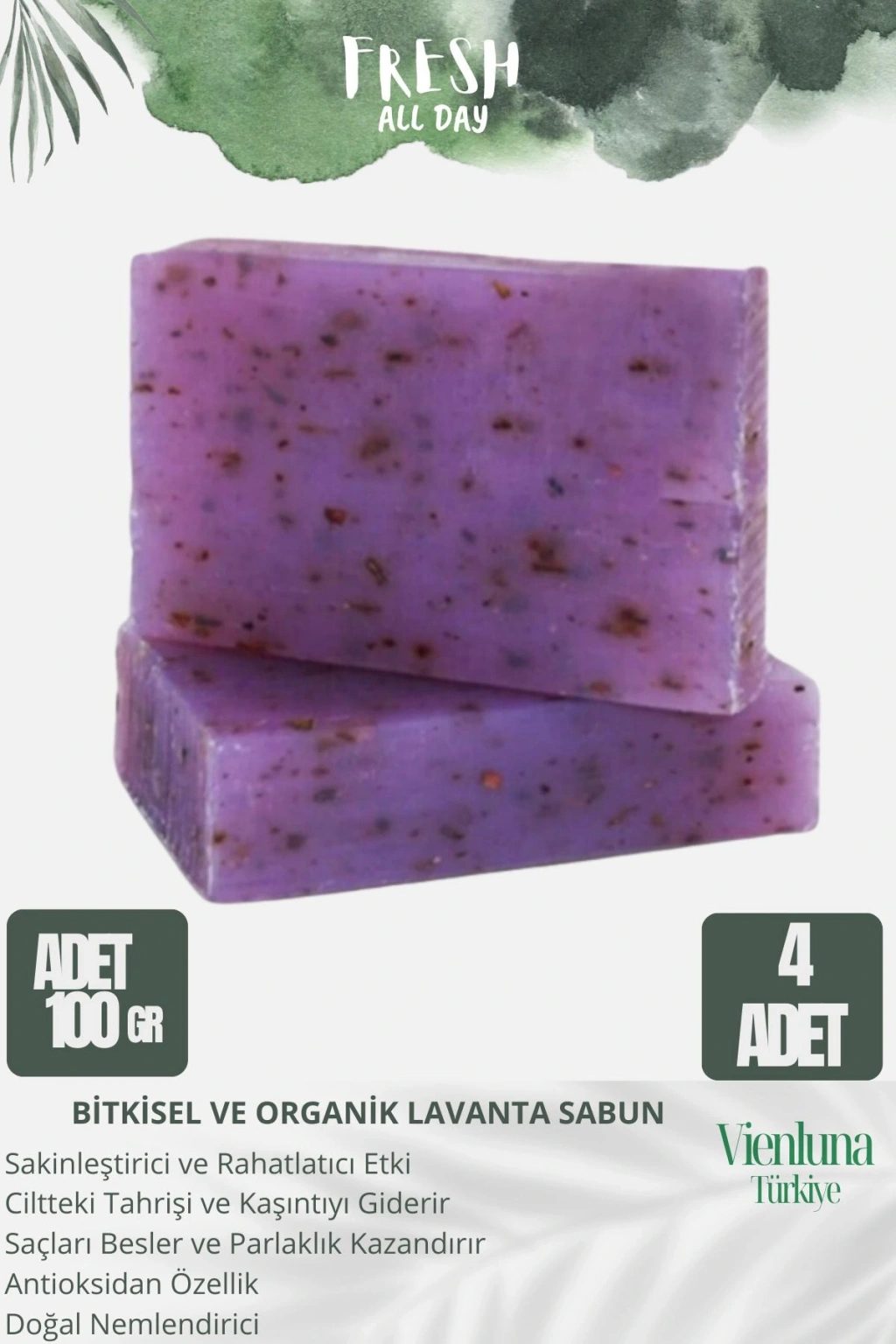 Özel Üretim El Yapımı %100 Doğal Ferah Kokulu Saç Vücut Cilt Dostu Orijinal Lavanta Sabunu 4 Adet