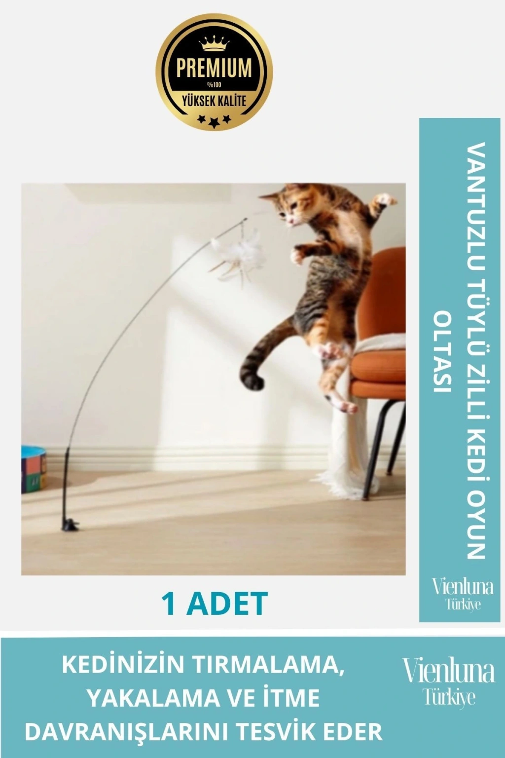 ?Eğlenceli ve İnteraktif:Vantuzlu Tüylü Zilli Kedi Oyun Oltası, kedinizin doğal avcılık içgüdülerini harekete geçirir ve oyun sırasında aktif kalmasını sağlar.