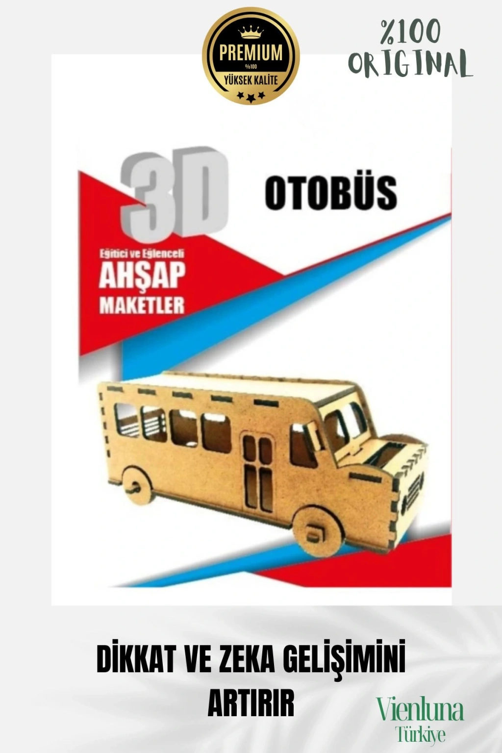 Yeni Sezon Eğitici Öğretici 3 Boyut Ahşap Puzzle Zeka Geliştirici Boyanabilir Oyun Maket Otobüs